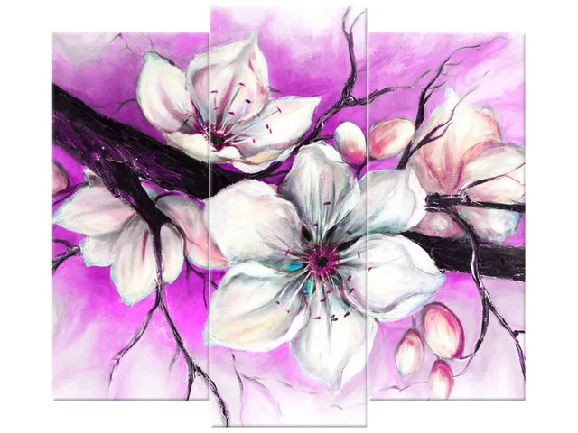 4468A_3M Štýlový obraz na stenu Puky višne vo fialovej |