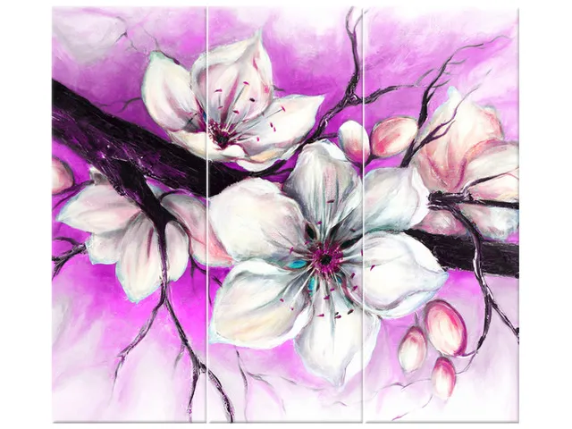 4468A_3M Štýlový obraz na stenu Puky višne vo fialovej |