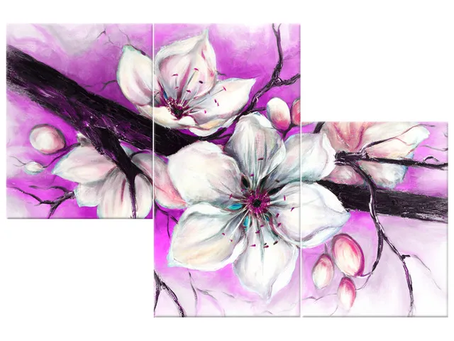 Úvod » Obrazy » Obrazy na plátne » Kvety » Štýlový obraz na stenu Puky višne vo fialovej