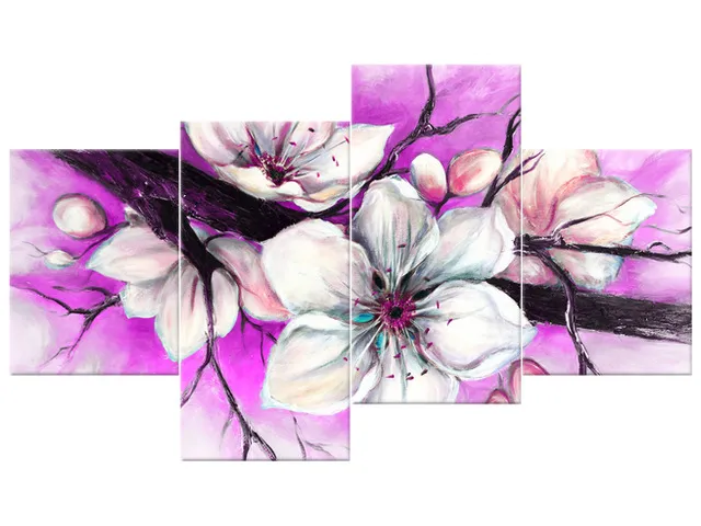 4468A_4E Štýlový obraz na stenu Puky višne vo fialovej |