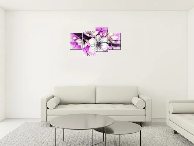 4468A_4B Štýlový obraz na stenu Puky višne vo fialovej |