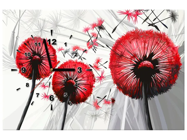 Úvod » Obrazy » Obrazy s hodinami » Štýlový obraz s hodinami Červené púpavy