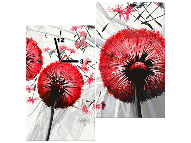 Úvod » Obrazy » Obrazy s hodinami » Štýlový obraz s hodinami Červené púpavy
