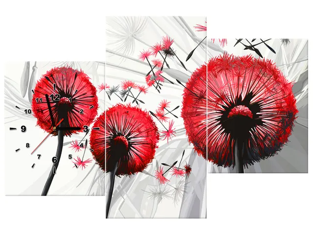 Úvod » Obrazy » Obrazy s hodinami » Štýlový obraz s hodinami Červené púpavy