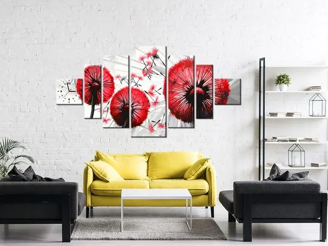 Úvod » Obrazy » Obrazy s hodinami » Štýlový obraz s hodinami Červené púpavy