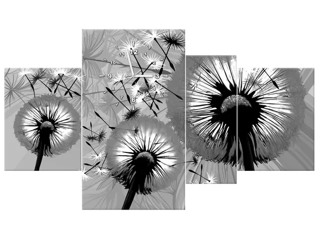 Úvod » Obrazy » Obrazy s hodinami » Štýlový obraz s hodinami Čierno biele púpavy