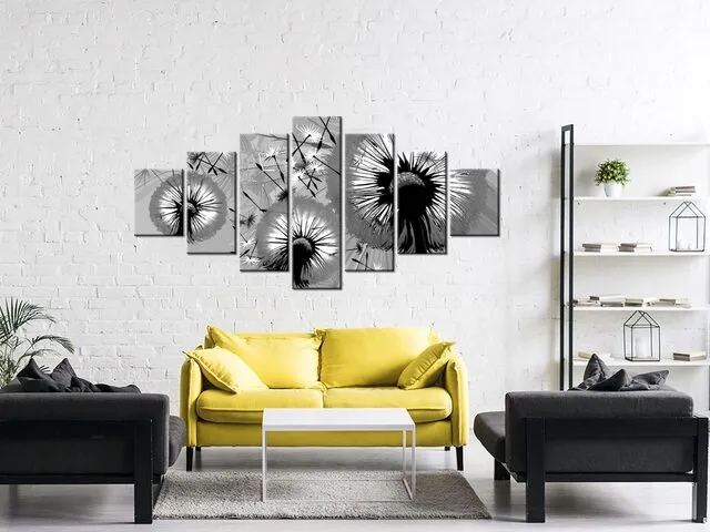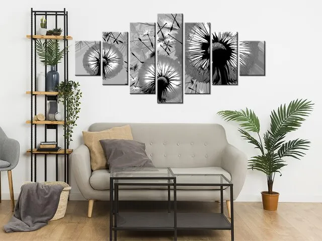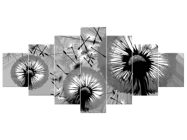 Úvod » Obrazy » Obrazy s hodinami » Štýlový obraz s hodinami Čierno biele púpavy