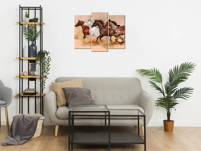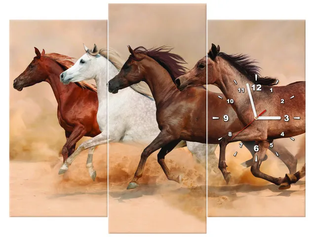 Úvod » Obrazy » Obrazy s hodinami » Štýlový obraz s hodinami Cválajúce kone