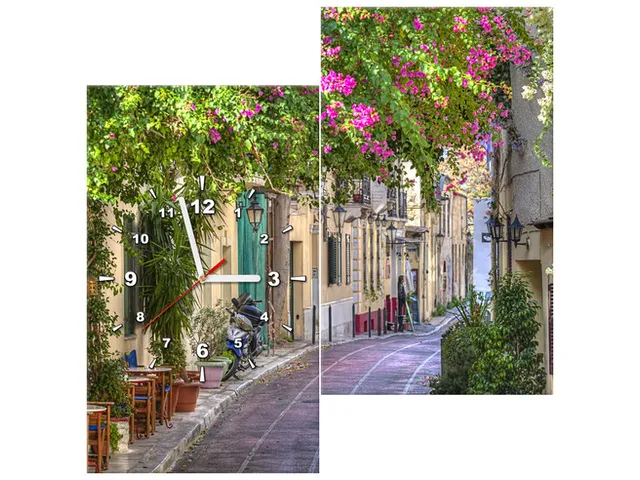 Štýlový obraz s hodinami Domy v oblasti Plaka