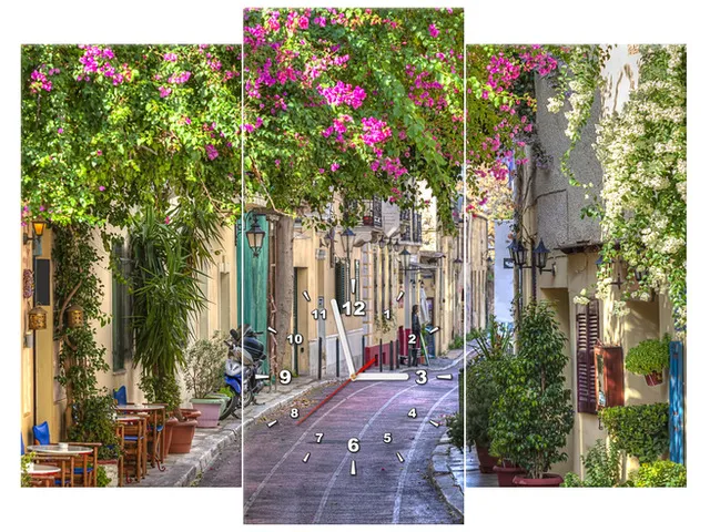 Štýlový obraz s hodinami Domy v oblasti Plaka