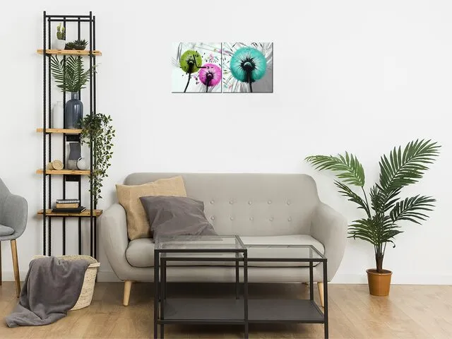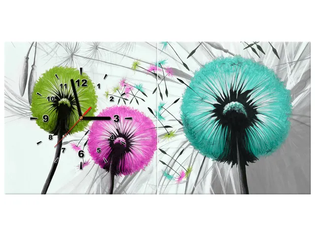 Úvod » Obrazy » Obrazy s hodinami » Štýlový obraz s hodinami Farebné púpavy