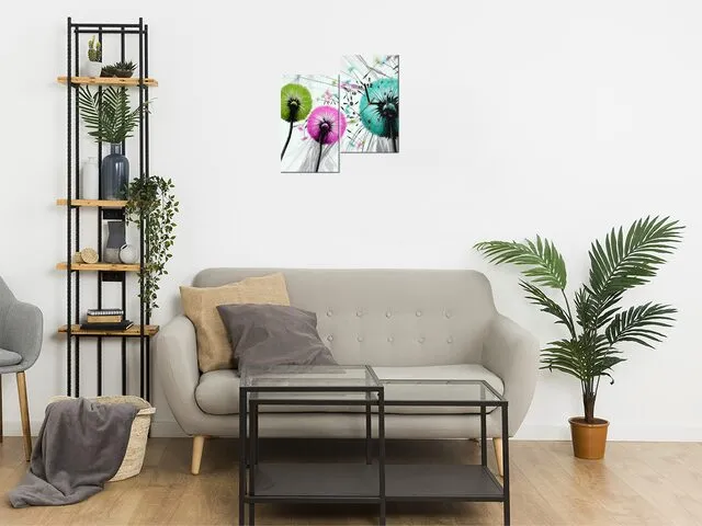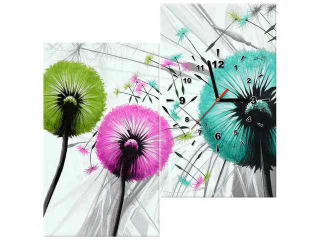 Úvod » Obrazy » Obrazy s hodinami » Štýlový obraz s hodinami Farebné púpavy