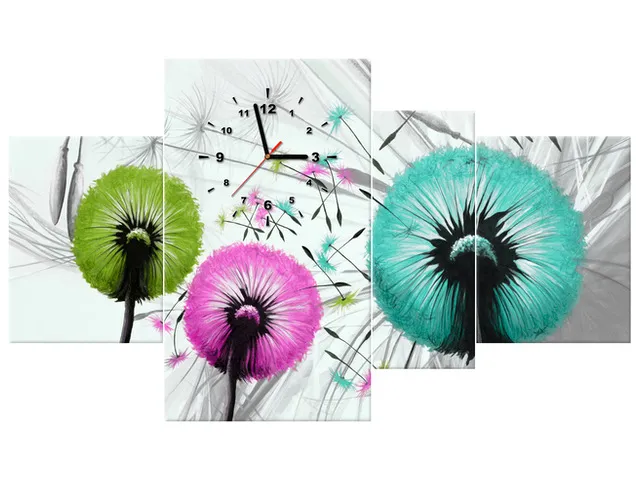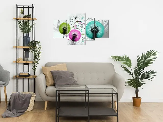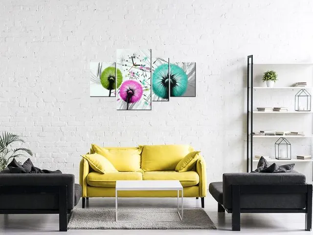 Úvod » Obrazy » Obrazy s hodinami » Štýlový obraz s hodinami Farebné púpavy