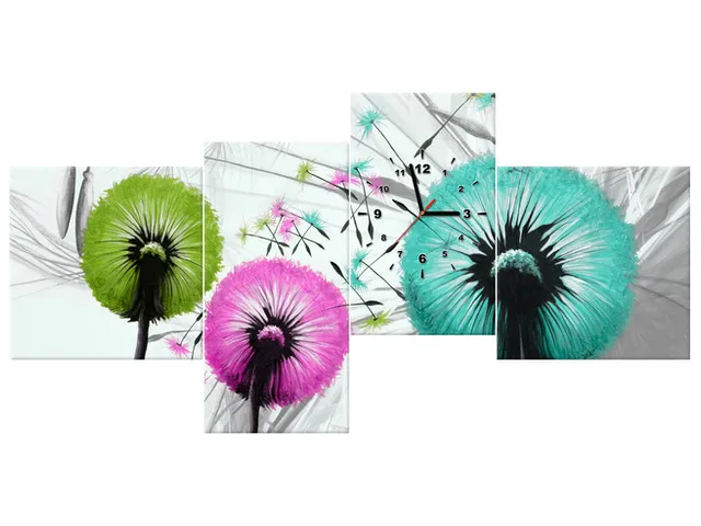 Úvod » Obrazy » Obrazy s hodinami » Štýlový obraz s hodinami Farebné púpavy