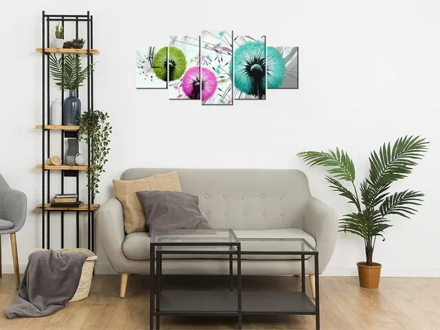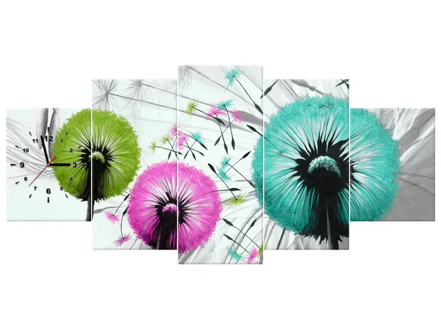 Úvod » Obrazy » Obrazy s hodinami » Štýlový obraz s hodinami Farebné púpavy