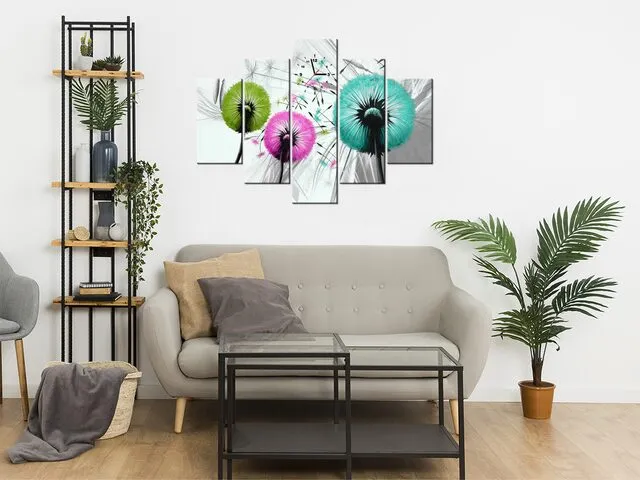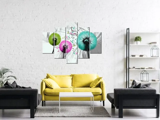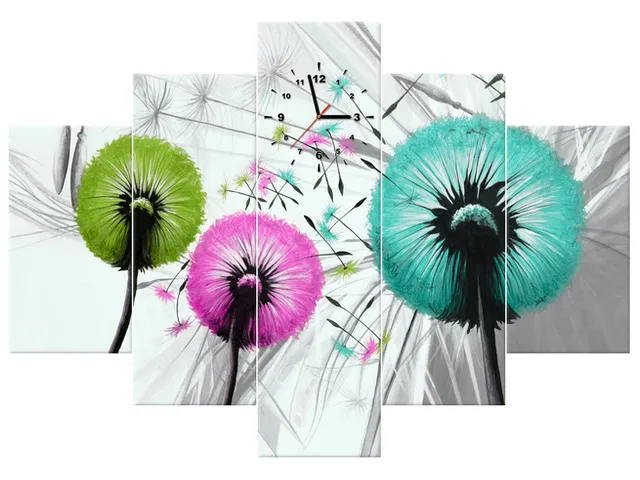 Úvod » Obrazy » Obrazy s hodinami » Štýlový obraz s hodinami Farebné púpavy
