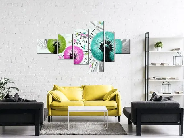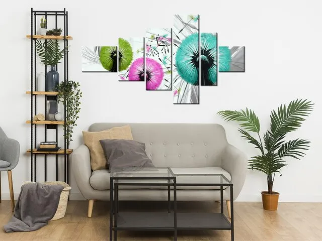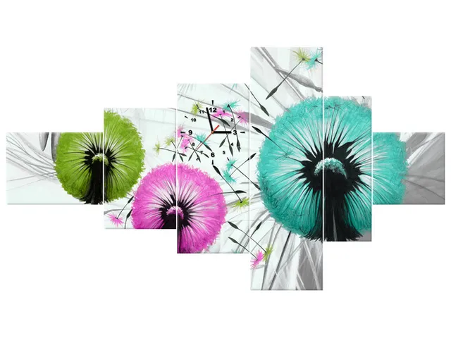 Úvod » Obrazy » Obrazy s hodinami » Štýlový obraz s hodinami Farebné púpavy
