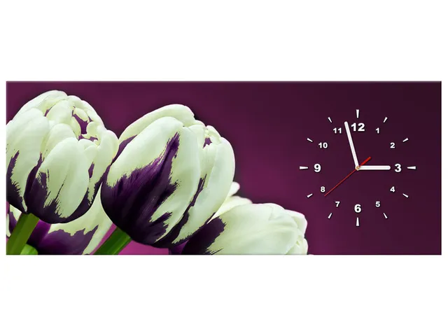 Úvod » Obrazy » Obrazy s hodinami » Štýlový obraz s hodinami Fialové tulipány