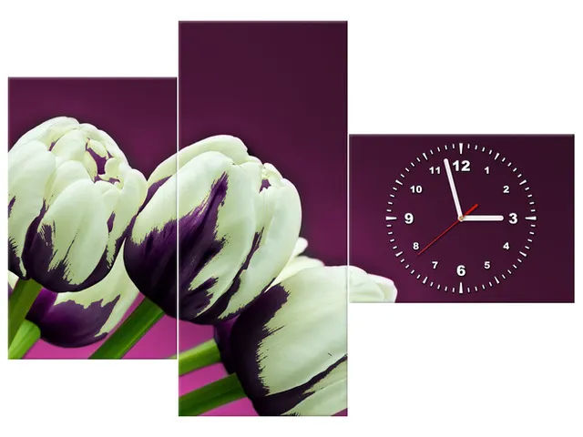 Úvod » Obrazy » Obrazy s hodinami » Štýlový obraz s hodinami Fialové tulipány