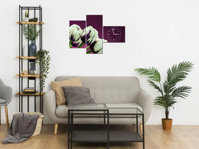 ZP1633A_3K Štýlový obraz s hodinami Fialové tulipány |