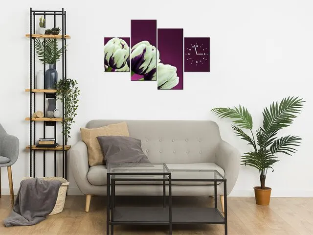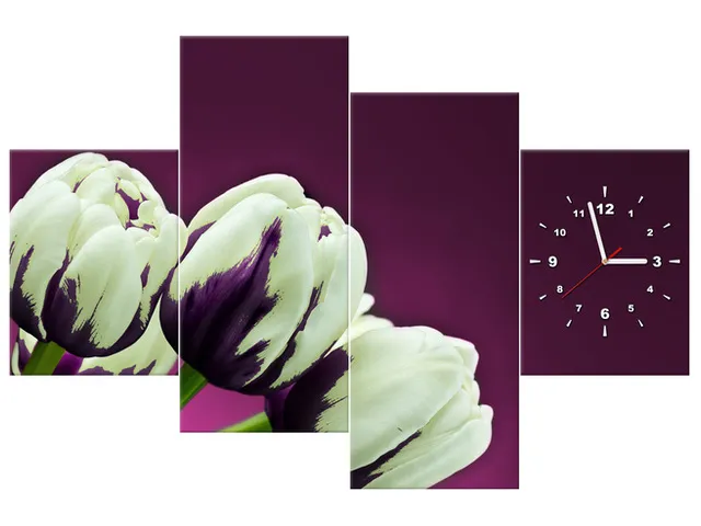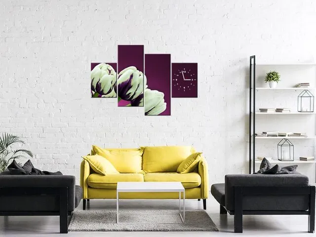 Úvod » Obrazy » Obrazy s hodinami » Štýlový obraz s hodinami Fialové tulipány
