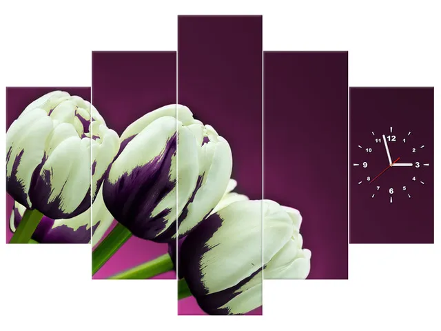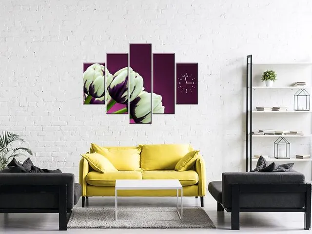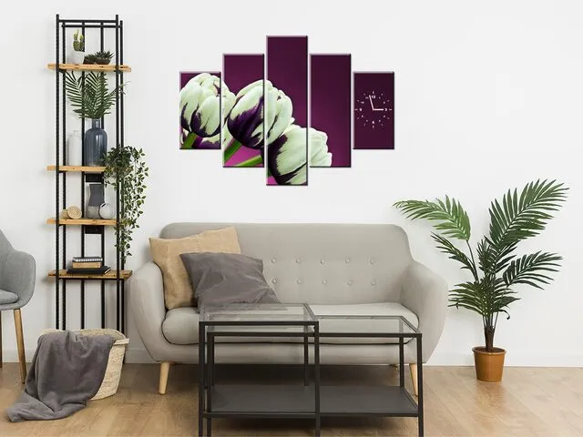 Úvod » Obrazy » Obrazy s hodinami » Štýlový obraz s hodinami Fialové tulipány
