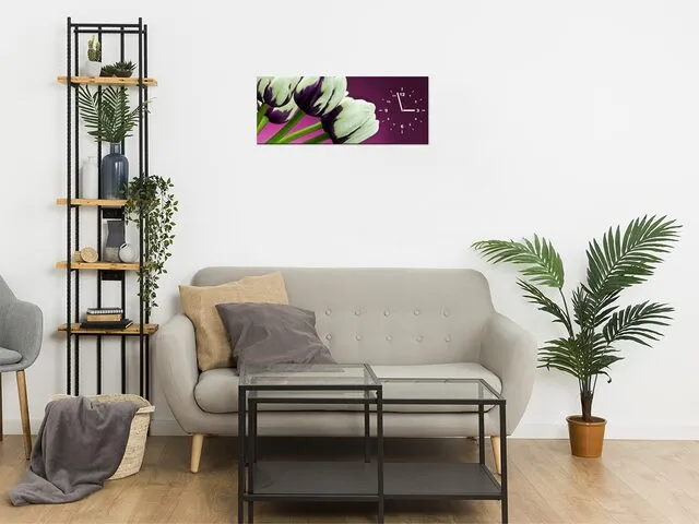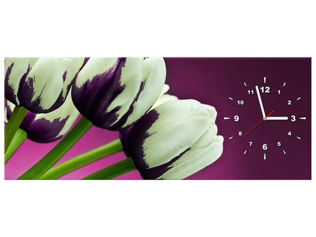 Úvod » Obrazy » Obrazy s hodinami » Štýlový obraz s hodinami Fialové tulipány