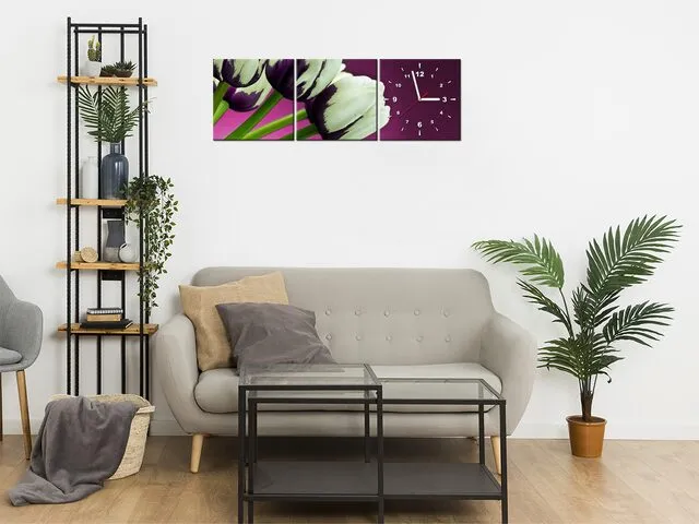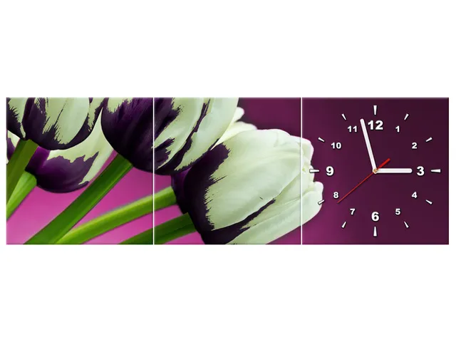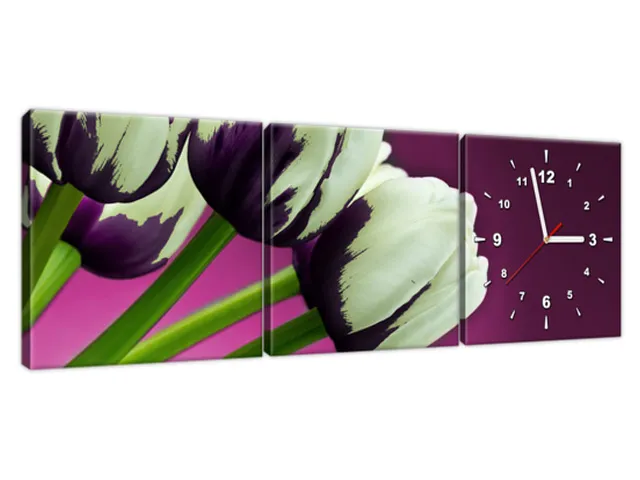 Úvod » Obrazy » Obrazy s hodinami » Štýlový obraz s hodinami Fialové tulipány