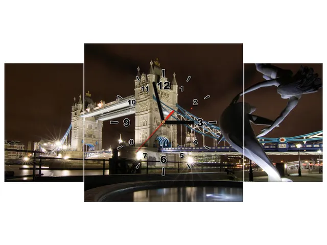 Úvod » Obrazy » Obrazy s hodinami » Štýlový obraz s hodinami Fontána pri Tower Bridge