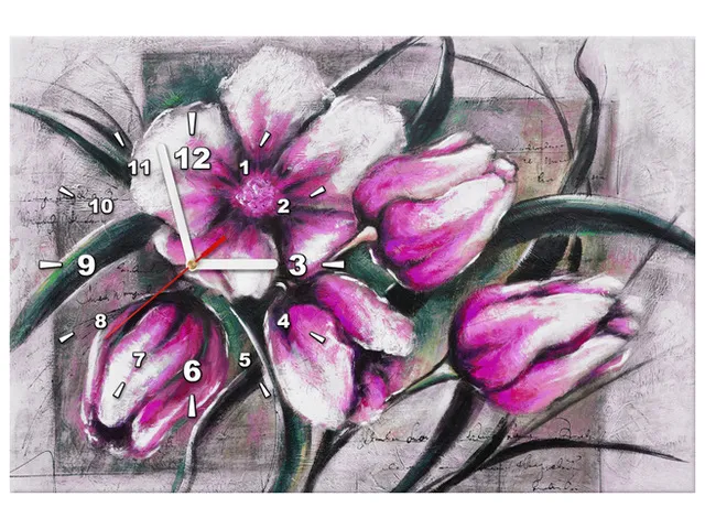 Barion Pixel Štýlový obraz s hodinami Kompozícia z tulipánov