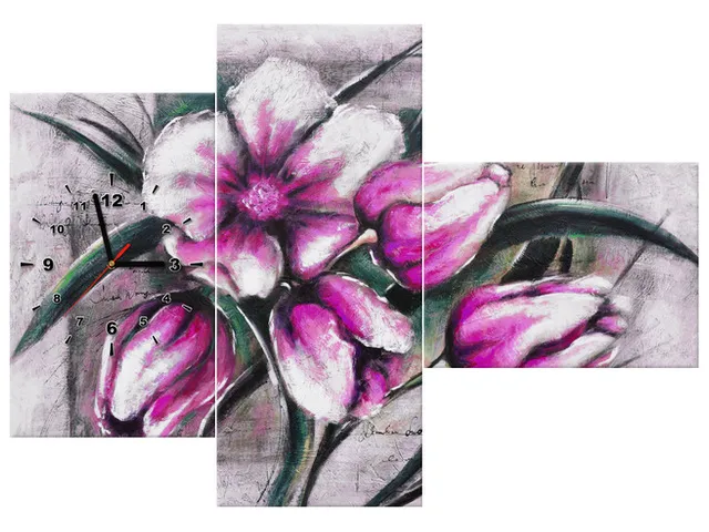 Úvod » Obrazy » Obrazy s hodinami » Štýlový obraz s hodinami Kompozícia z tulipánov