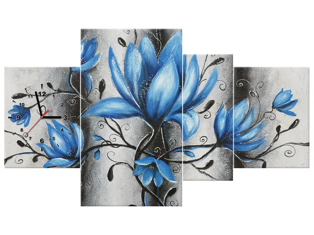Štýlový obraz s hodinami Kytica tyrkysových magnólií