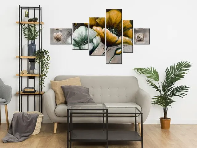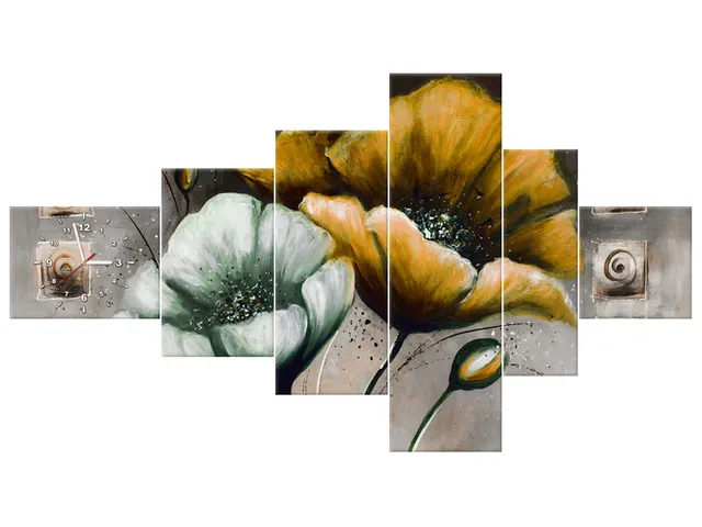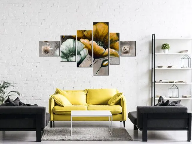 Úvod » Obrazy » Obrazy s hodinami » Štýlový obraz s hodinami Maľované maky v žltej