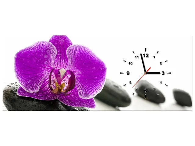 Úvod » Obrazy » Obrazy s hodinami » Štýlový obraz s hodinami Orchidea na kameni
