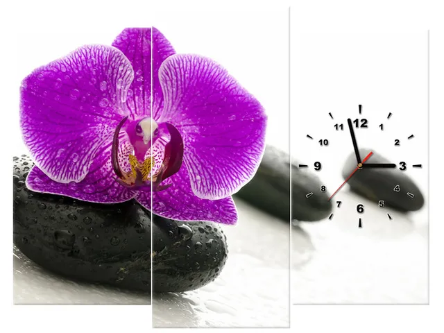 Úvod » Obrazy » Obrazy s hodinami » Štýlový obraz s hodinami Orchidea na kameni