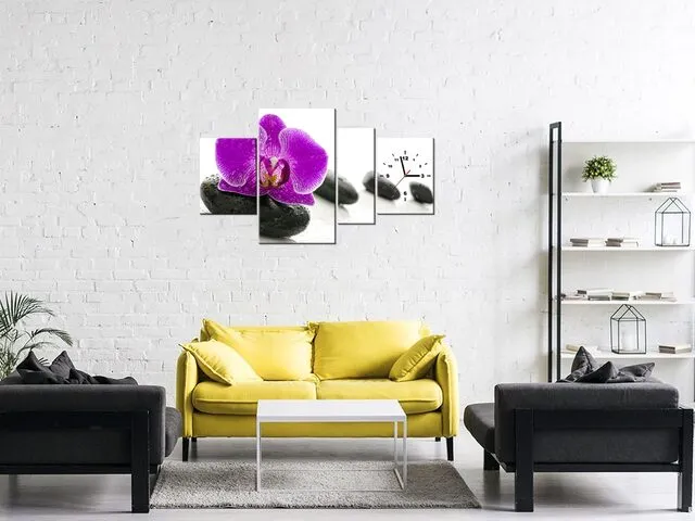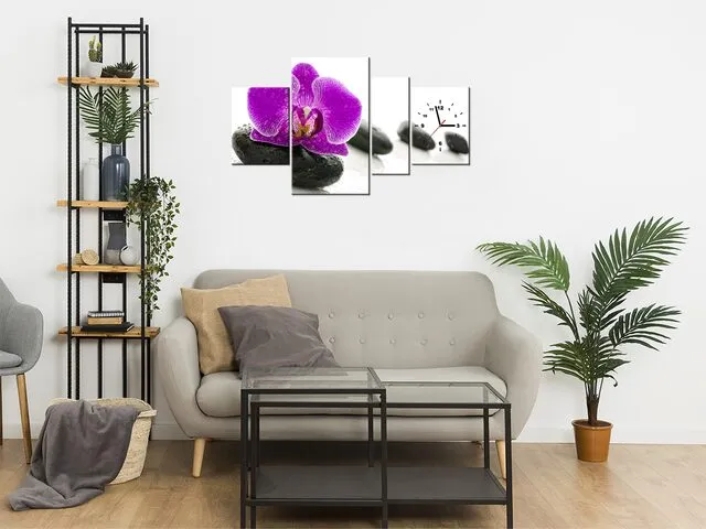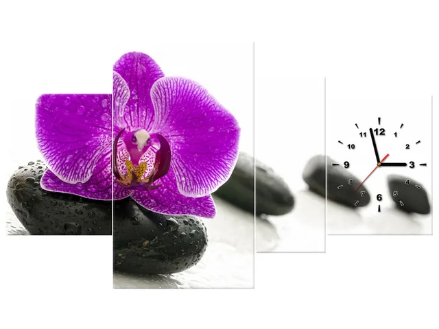 Úvod » Obrazy » Obrazy s hodinami » Štýlový obraz s hodinami Orchidea na kameni