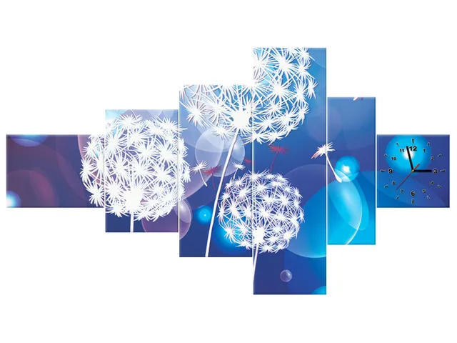 Úvod » Obrazy » Obrazy s hodinami » Štýlový obraz s hodinami Púpavy na abstraktnom pozadí