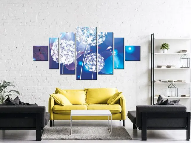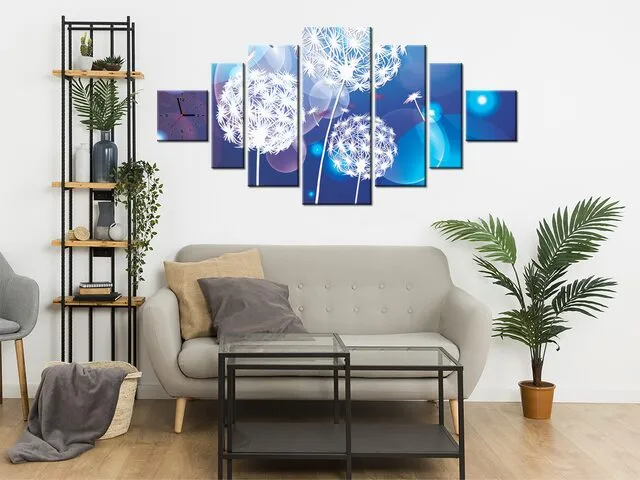Úvod » Obrazy » Obrazy s hodinami » Štýlový obraz s hodinami Púpavy na abstraktnom pozadí