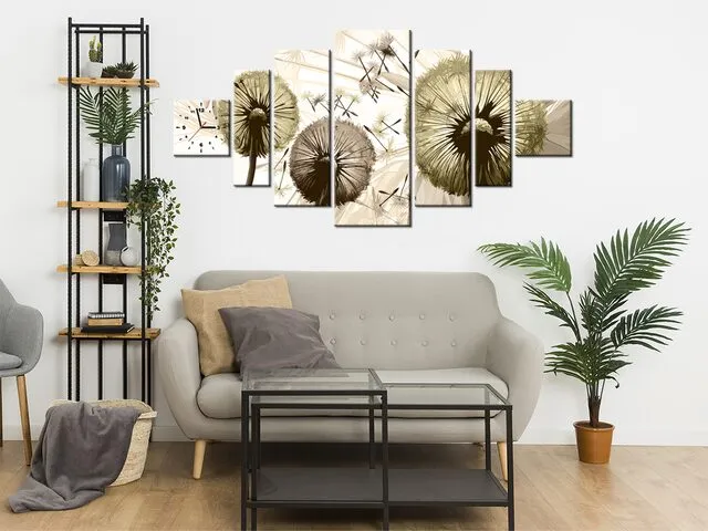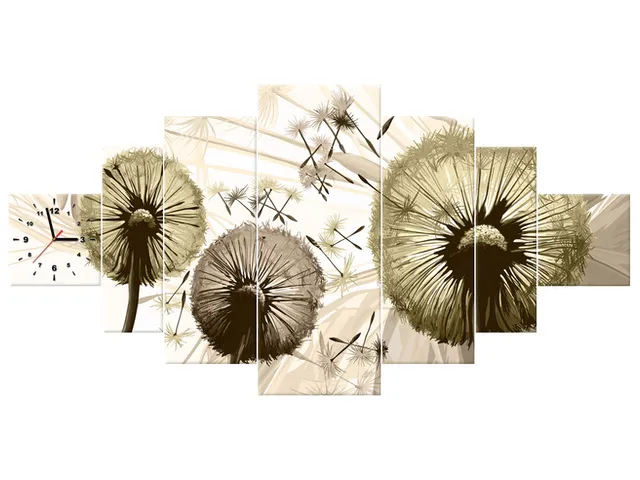 Úvod » Obrazy » Obrazy s hodinami » Štýlový obraz s hodinami Púpavy v sépii
