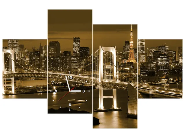 Úvod » Obrazy » Obrazy s hodinami » Štýlový obraz s hodinami Rainbow Bridge v Tokiu