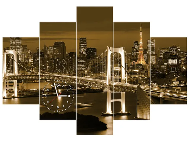 Úvod » Obrazy » Obrazy s hodinami » Štýlový obraz s hodinami Rainbow Bridge v Tokiu