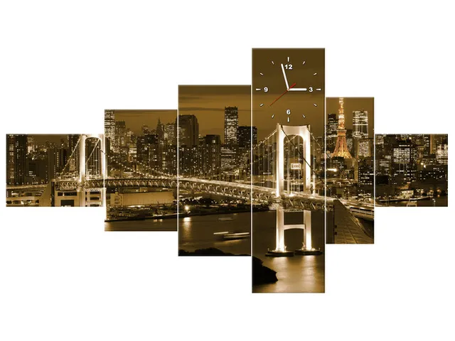 ZP1530A_5H Štýlový obraz s hodinami Rainbow Bridge v Tokiu |