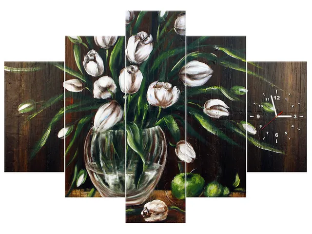 Úvod » Obrazy » Obrazy s hodinami » Štýlový obraz s hodinami Tulipány