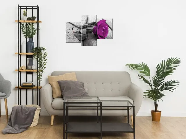 ZP1803A_3K Štýlový obraz s hodinami Výrazná ruža |