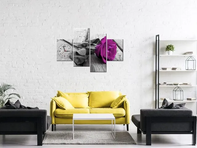 Barion Pixel Štýlový obraz s hodinami Výrazná ruža
