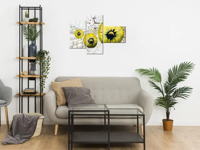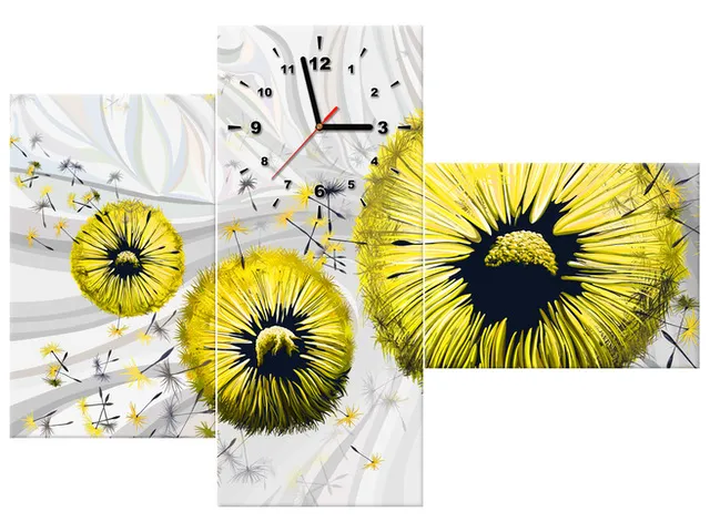 Úvod » Obrazy » Obrazy s hodinami » Štýlový obraz s hodinami Žlté púpavy