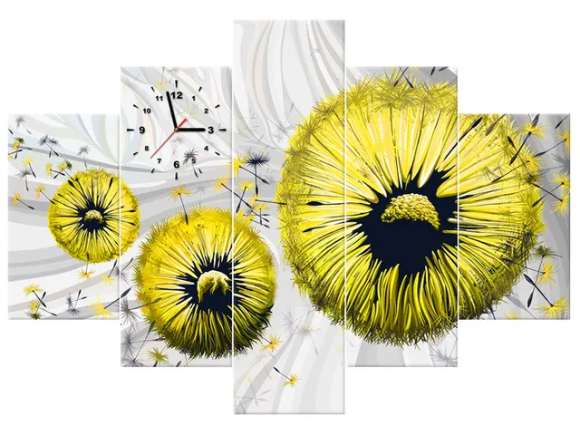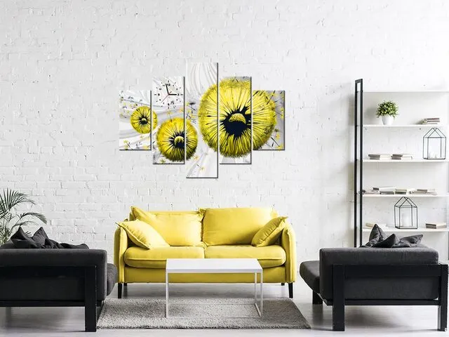 Úvod » Obrazy » Obrazy s hodinami » Štýlový obraz s hodinami Žlté púpavy
