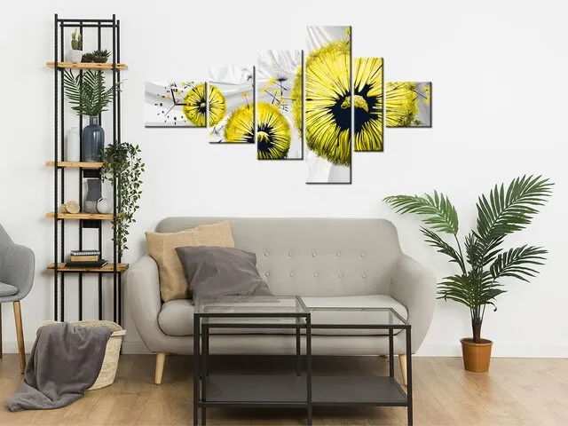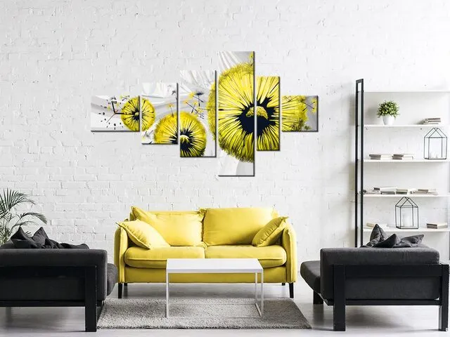 Úvod » Obrazy » Obrazy s hodinami » Štýlový obraz s hodinami Žlté púpavy