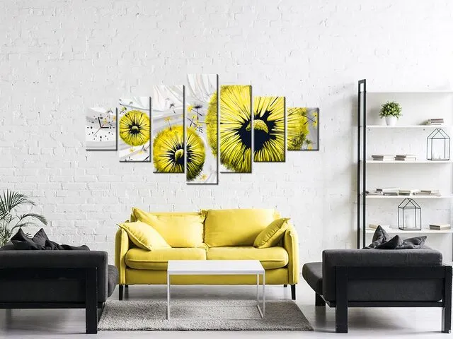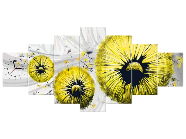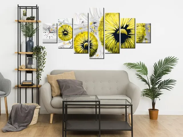 Úvod » Obrazy » Obrazy s hodinami » Štýlový obraz s hodinami Žlté púpavy
