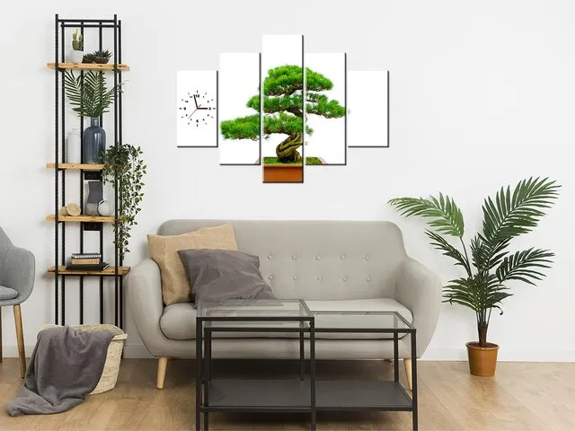 Úvod » Obrazy » Obrazy s hodinami » Štýlový obraz s hodinami na plátne Bonsaj